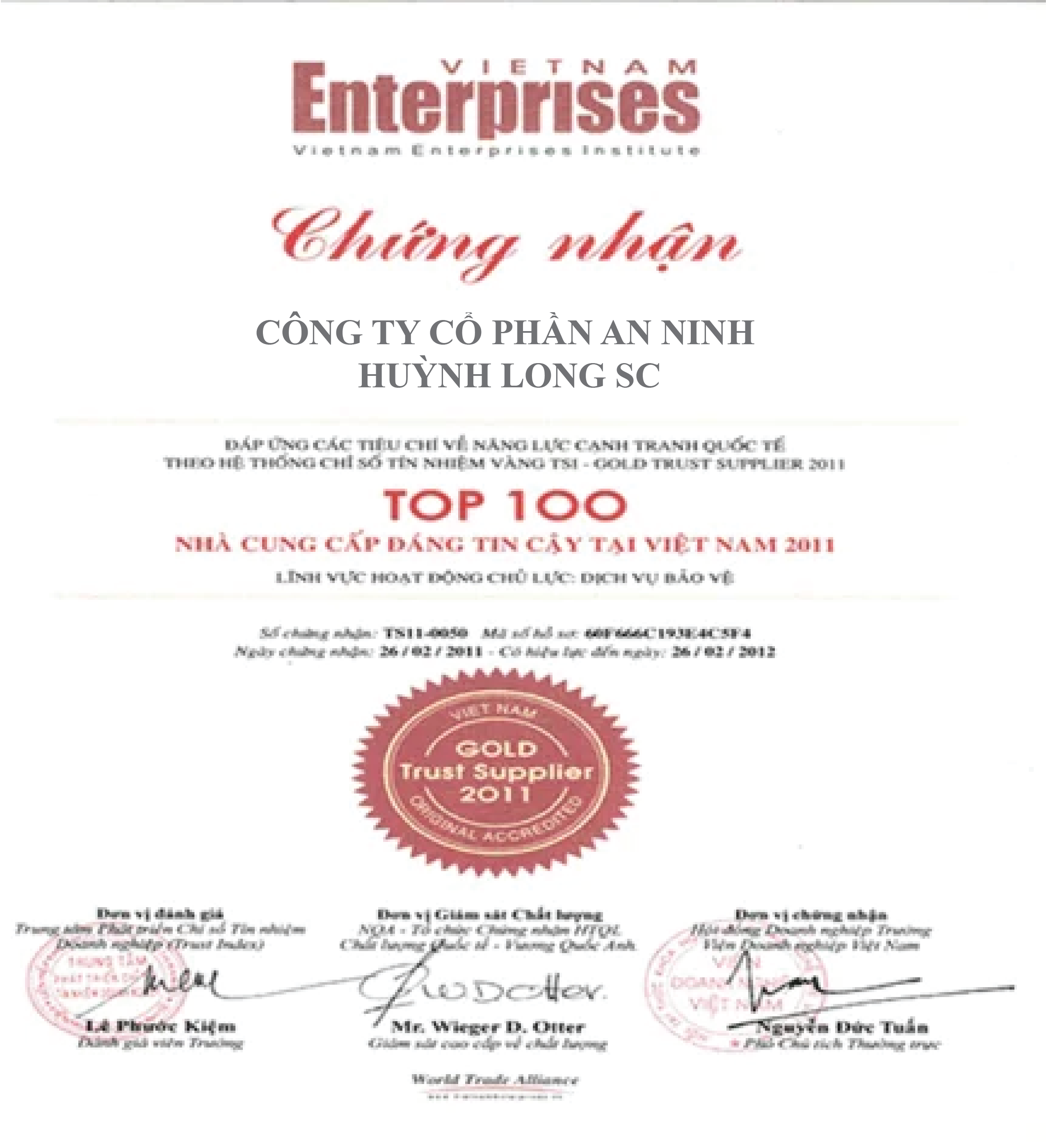 CÁC CHỨNG NHẬN MÀ BẢO VỆ HUỲNH LONG SC