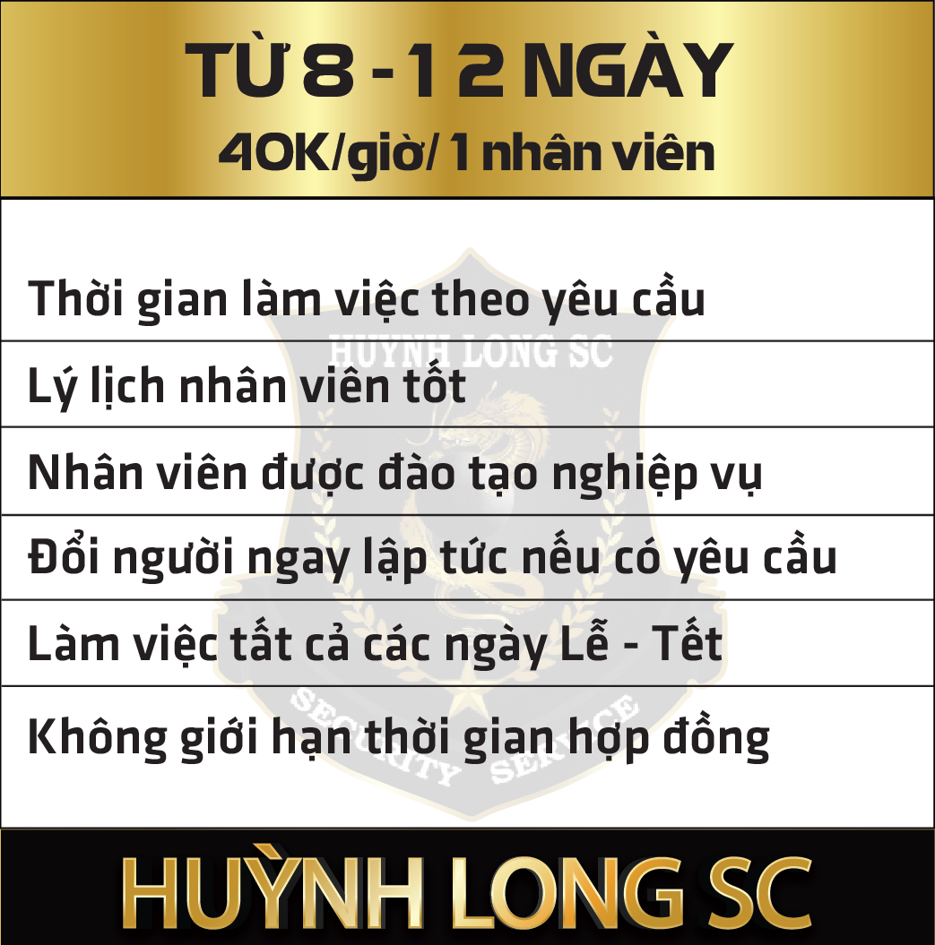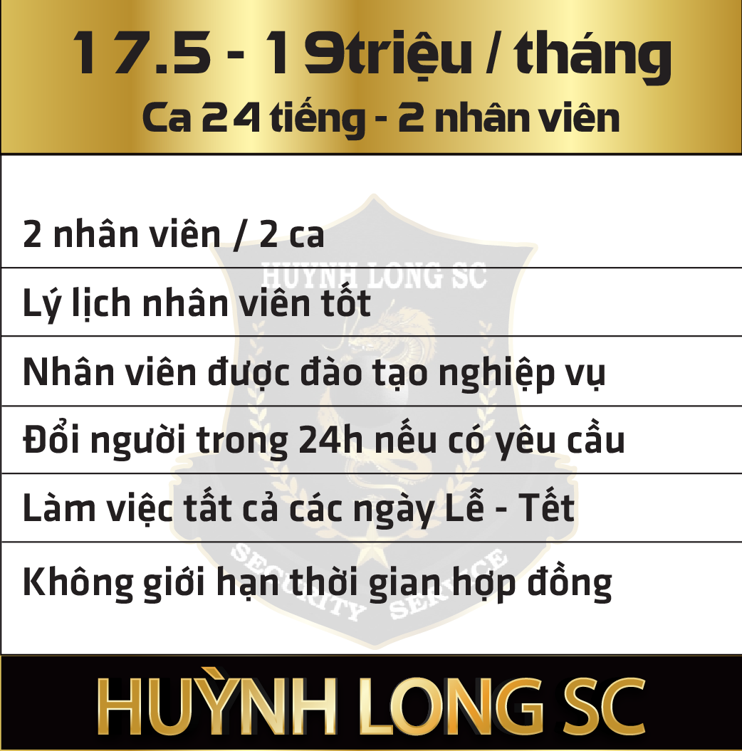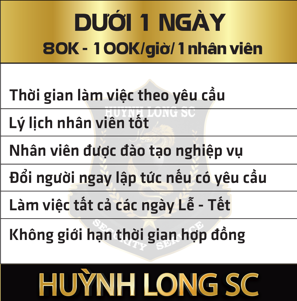 BẢNG GIÁ DỊCH VỤ BẢO VỆ