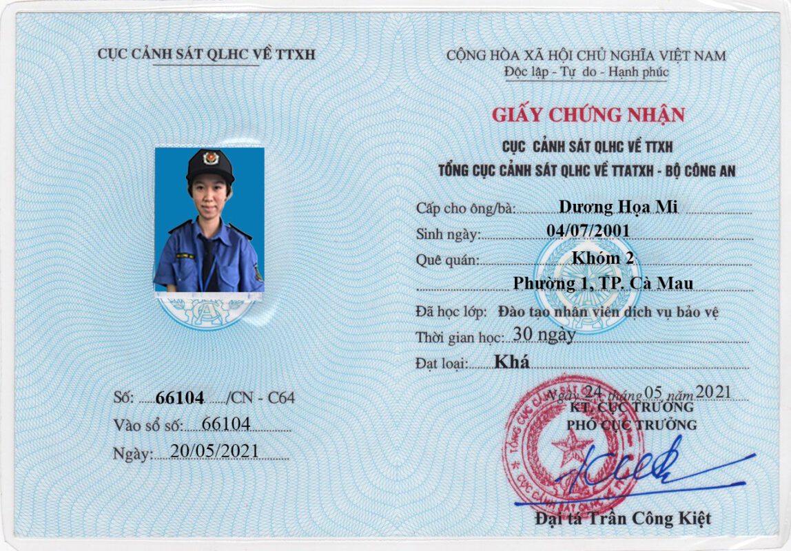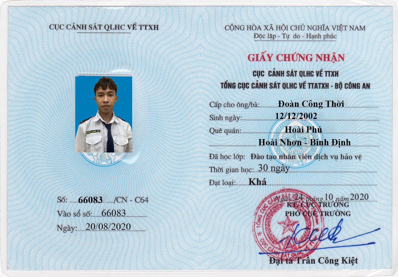 - Có tinh thần ý thức cao trong công tác bảo vệ.